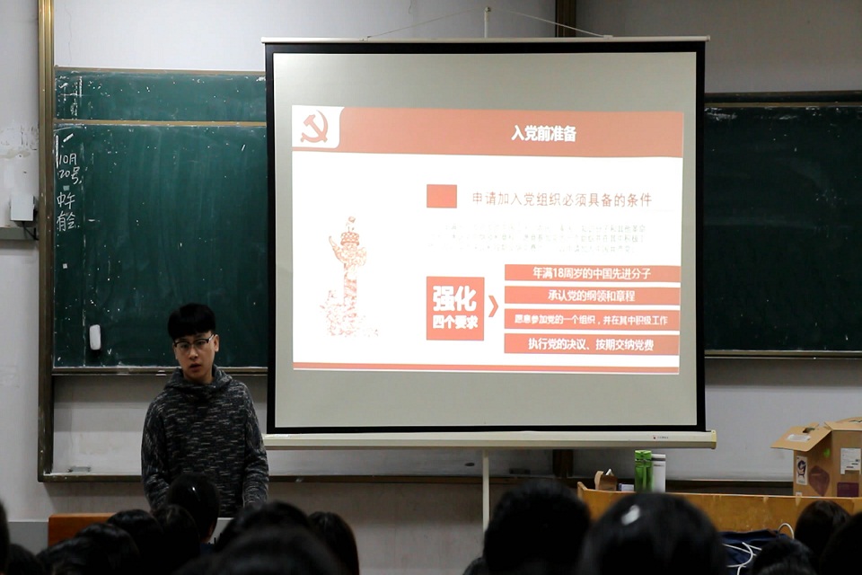 杜立言从“我为什么要申请入党”讲起,主要从入党申请人为什么要递交入党申请书、入党申请书基本写作要求 、入党基本程序等方面进行了细致的讲解。杜立言和团员同学分享了自己的入党经历,并向同学们讲述自己如何在党组织的培养教育下思想素质一步步提升,他呼吁全体团员青年承担起老员工应承担的责任,以实际行动向党组织靠拢。