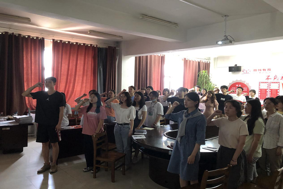 随后,林志强为毕业生党员进行了最后一堂党课,林志强表示:“加强党的基本知识的学习,要时刻牢记我们从哪里来,到哪里去”。他以2008年的汶川抗震救灾和新冠疫情进行了讲述,要求我们牢记“记得来的路”这句习近平总书记的教诲,在毕业后不断学习,努力提高自己,无愧于各位同志作为党员的身份。随后马双带领2021届全体毕业生党员重温了入党誓词并就毕业生党员们党组织关系转接的事宜和工作做了安排。同时,为了保障党史学习教育的成效,加强对党史学习教育过程的监督,通过座谈会的方式,与毕业生进行沟通交流,询问毕业生对党史学习教育过程的建议和意见。