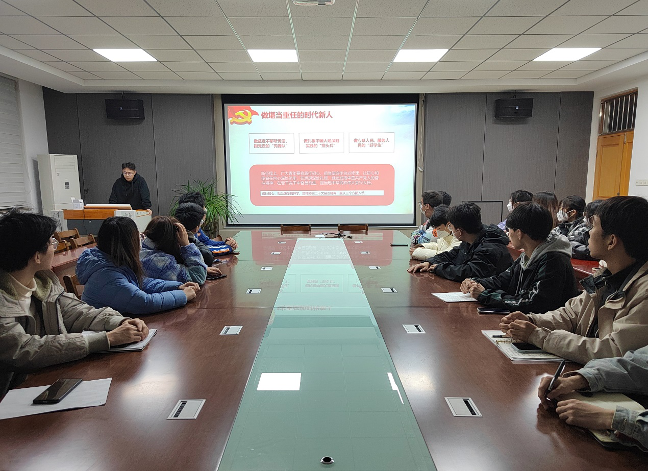 王怡从党的二十大主题、主要成果,马克思主义中国化时代化,中国式现代化,全面建设社会主义现代化的目标任务,坚持党的全面领导和全面从严治党和应对风险挑战等六方面对党的二十大精神进行深入浅出的解读。王鹏贻从做坚定不移听党话、跟党走的“先锋队”,做扎根中国大地深刻实践的“排头兵”和做心系人民、服务人民的“好员工”三个方面全面深刻地阐述了如何做堪当重任的时代新人。