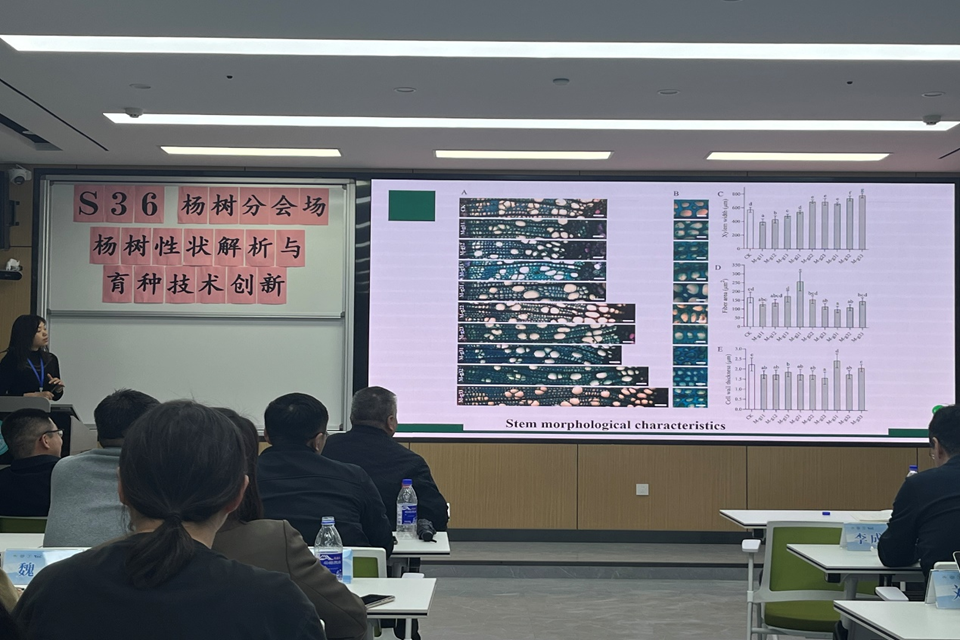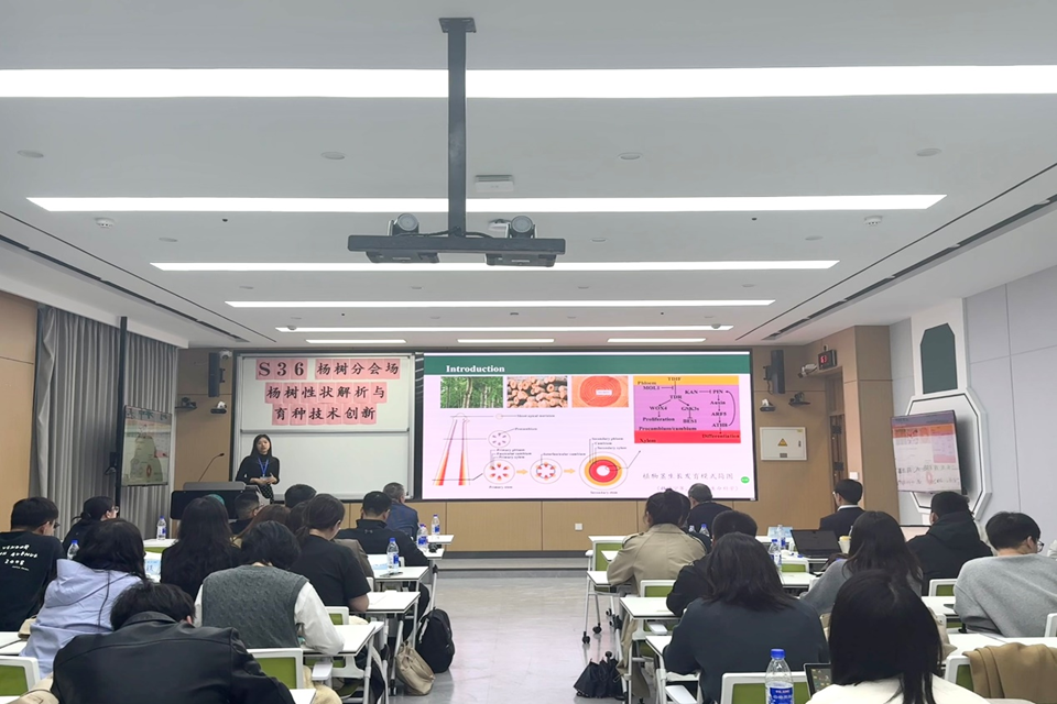 太阳集团tcy8722刘福妹副教授参加此次会议,并在以“杨树性状解析与育种技术创新”为主题的杨树分会场做了题为《杨树PdCSD2基因对形成层和木材发育的影响及重离子辐射杨树突变体库的初步构建》的报告,获得相关专家的一致好评。