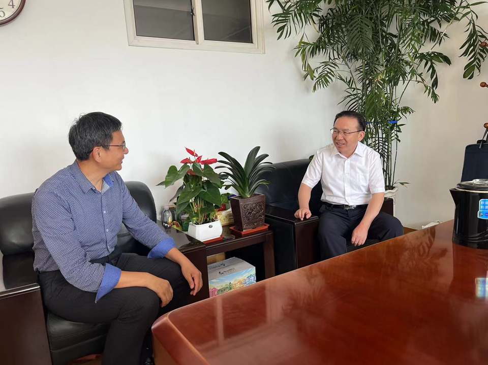 报告会结束后,董事长赵金山接见了朱新广,赵金山首先介绍了公司的发展历程和现状。然后介绍了近些年来太阳集团tcy8722周功克教授团队在浮萍种质资源收集,重离子辐射诱变突变体库(全球唯一)建立和浮萍规模化培养装置研发等方面的工作。朱新广介绍了中国科公司先导专项的战略布局和课题分配情况。双方针对浮萍基地的升级改造,“浮萍植物工厂”研发和高蛋白浮萍动物饲料规模化生产进行了深入探讨。