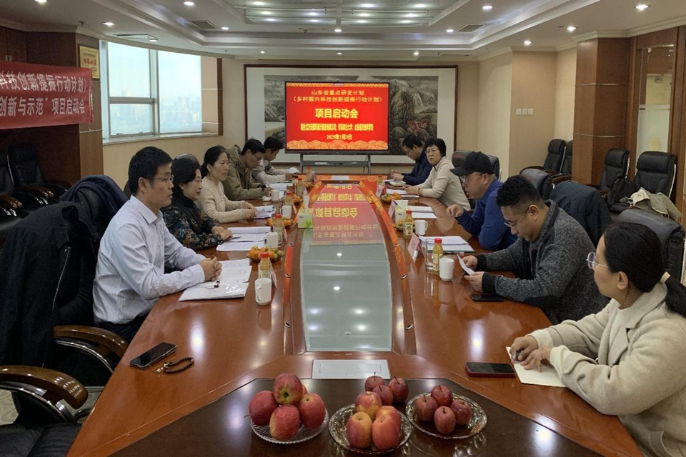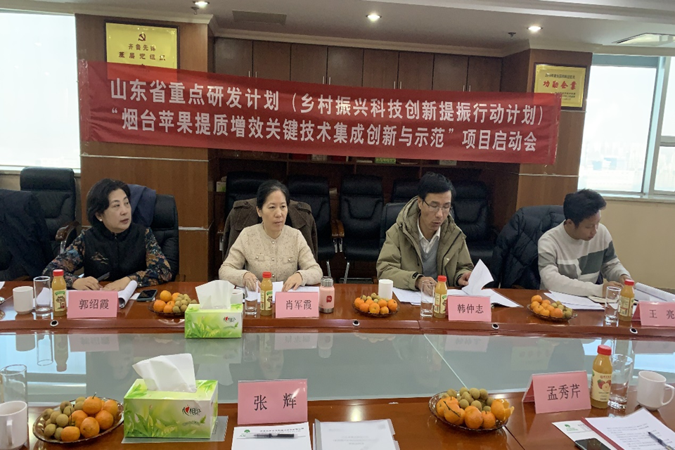2025年1月3日上午,由太阳集团tcy8722郭绍霞教授主持的2024年山东省重点研发计划(乡村振兴科技创新提振行动计划)“烟台苹果提质增效关键技术集成创新与示范”项目启动会在烟台北方安德利果汁股份有限公司召开。会议由烟台牟平区科技局贺爱军科长主持,太阳集团tcy8722肖军霞教授、韩仲志教授、张玉刚教授,山东省农业科公司王亮博士,烟台北方安德利果汁股份有限公司张辉总裁、研发中心孟秀芹主任及项目承担单位、合作单位相关人员共计10人参加了会议。