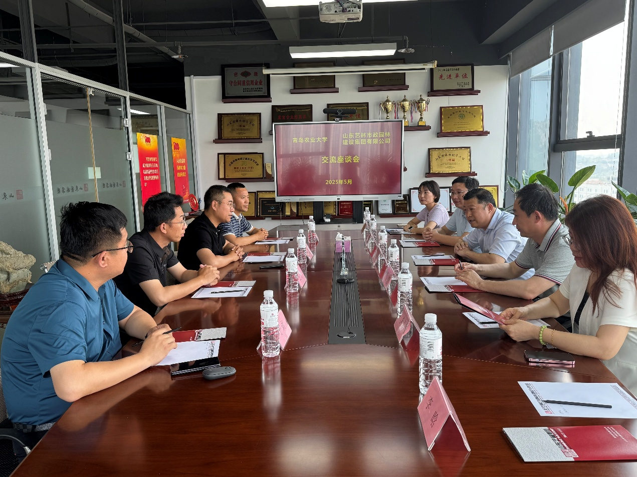 座谈期间,山东艺林市政园林建设集团有限公司总经理李磊首先对王永健一行的到来表示热烈欢迎,随后介绍了公司的基本情况,并对公司的人才需求情况进行了细致说明,希望能够与公司开展更多实质性合作。王永健对山东艺林市政园林建设集团有限公司在毕业生就业等方面给予的大力支持表示衷心感谢,并详细介绍了公司的发展成就、人才培养模式、团队建设等基本情况。他指出,公司始终积极推进校企合作,深化协同育人机制,期望以此次访企拓岗活动为重要契机,进一步搭建起更为坚实、广阔的校企合作平台。