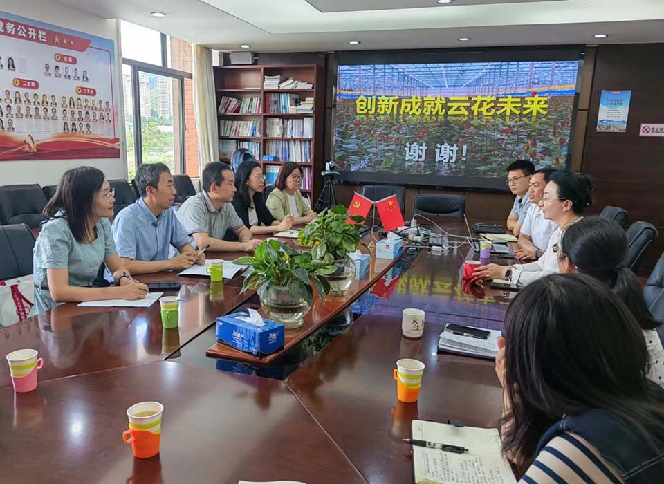 在云南农科院花卉所,就科技创新、成果转化和社会服务等方面的具体做法和成功经验开展座谈交流。双方表示,将进一步加强在花卉新品种研发、成果转化及推广应用、研究生联合培养等方面的合作。在中农大-云天化花卉科技小院,考察团实地参观了科技小院的试验田、研发中心及培训基地,深入了解了小院在产学研深度融合、科技助农增收等方面的具体做法。