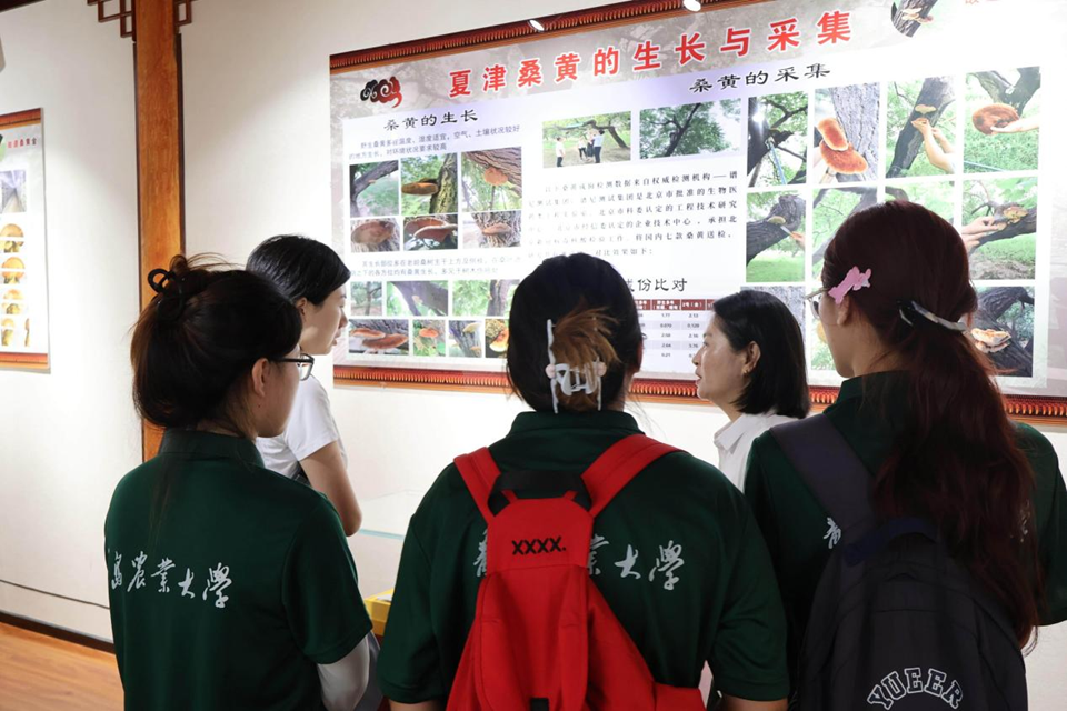 7月25日,团队在德州市农业农村局工作人员的带领下,先后走访古桑博物馆及圣树源、椹树下、鑫瑞娜三家当地企业,深入探寻桑文化相关资源的转化利用路径。古桑博物馆以桑产业加工为核心展示内容,系统呈现了桑资源从原始形态到各类产品的全加工链条,馆内陈列着从古代到现代的桑产业加工工具,通过生产可视化展示了当代桑资源在食品加工、纺织制造等领域的加工工艺。在圣树源企业,团队走进人工桑黄养殖基地,了解了桑黄的培育环境控制、生长周期管理及专业养护技术;在椹树下企业,负责人展示了桑葚酒从原料甄选到陈酿的完整酿造工艺及市场销售体系;鑫瑞娜企业的现代化棉花种植模式和完善产业链条,也为团队提供了宝贵参考。