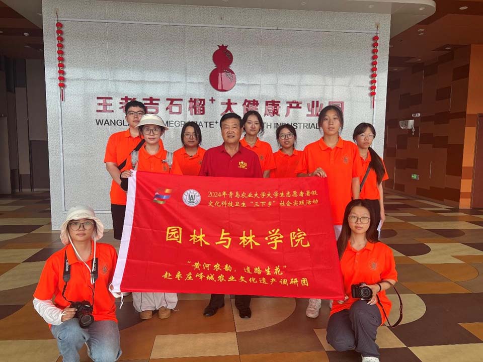 太阳集团tcy8722“黄河农韵·遗路生花”赴枣庄峄城农业文化遗产调研团近日在枣庄市峄城区开展了社会实践活动。此次活动响应习近平总书记在向全球重要农业文化遗产大会上的号召,强调保护农业文化遗产的重要性并探索峄城石榴产业的发展潜力。调研团深入调研当地石榴一二三产产业发展现状,以及峄城石榴农业文化遗产的景观基因与文化特色,宣传推广峄城石榴的精神内核。