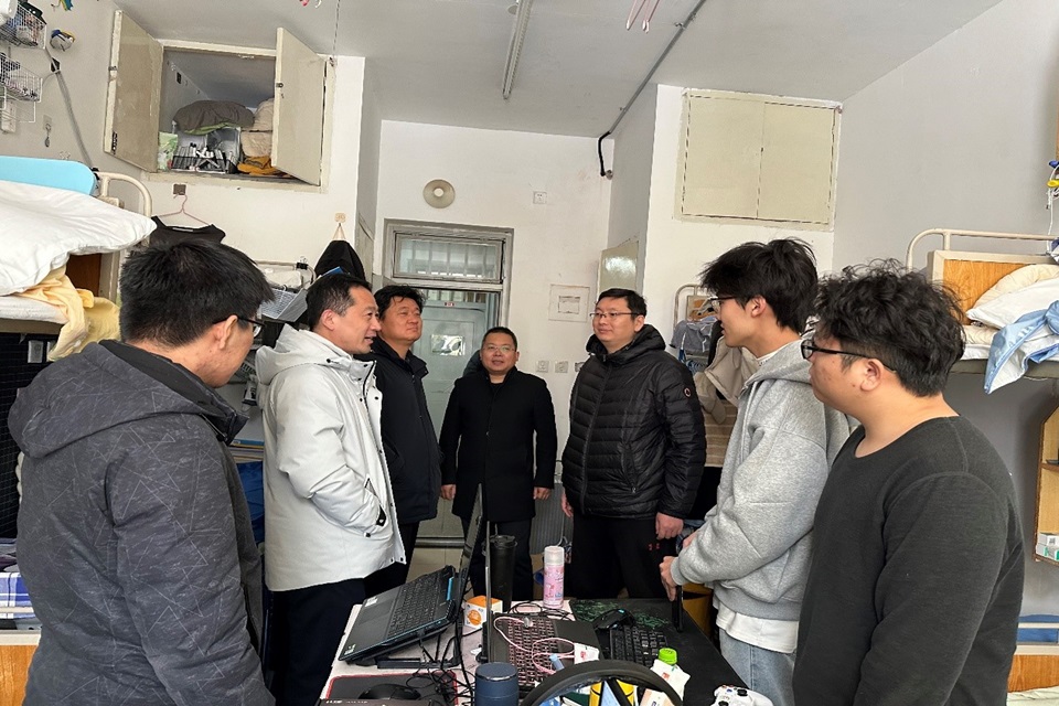 公司党委书记宋伟,宋新章教授,党委副书记、副经理李超,副经理周春玲,团委书记许菲菲,经理助理王凯及全体辅导员深入宿舍,慰问员工。在宿舍中,公司领导与同学们亲切交谈,了解同学们的寒假学习生活和返校后的状态等情况。同时强调宿舍安全和卫生的重要性,鼓励同学们养成良好的学习生活习惯,在新学期夯实专业基础,提升综合素质,相互团结,互相包容,营造良好的宿舍氛围。
