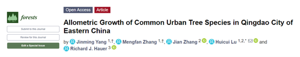 近期,太阳集团tcy8722卢慧翠副教授课题组在城市树木异速生长及其树种特性对异速生长影响方面的研究取得新进展。相关研究成果 ”Allometric Growth of Common Urban Tree Species in Qingdao City of Eastern China” 发表于国际期刊Forests(中科院2区,IF:3.282)上。