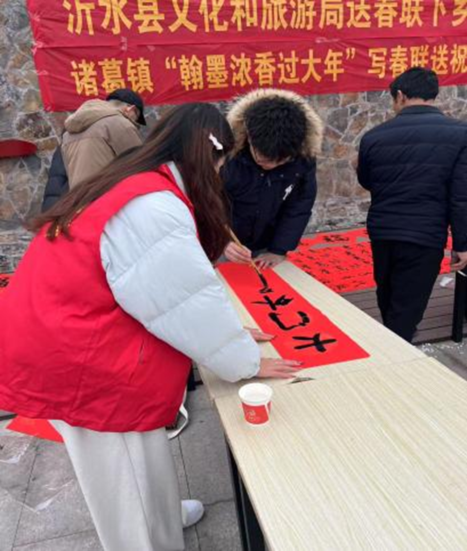 青春林韵·“沂”路生花实践服务团的志愿者以实际行动诠释奉献精神,丰富沂水人民春节文化生活,为传承弘扬优秀传统文化、助力乡村振兴贡献力量,让民众在喜庆氛围中感受家乡变化,共迎蛇年新征程。