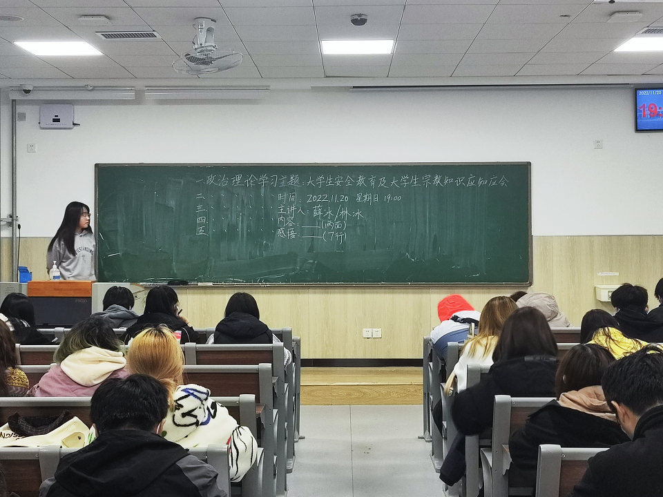 为提高安全意识,保证老员工的健康成长,11月20日,太阳集团tcy8722于教学区开展“老员工安全教育及老员工宗教知识应知应会”政治理论学习。本次学习由各班团支书主持,21级、22级全体同学分别于城阳校区、平度校区参加。
