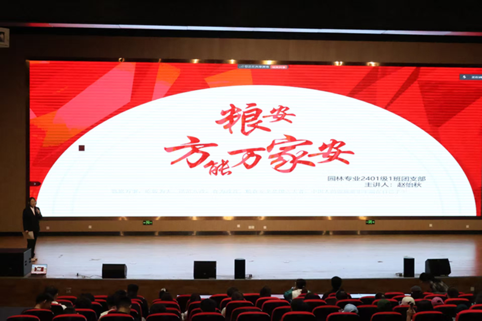 大赛过程中,各支部成员围绕党团最新政策及热点议题展开汇报,巧妙运用案例与视频,生动阐释汇报内容。其中,以“以青春践行使命,以奋斗诠释担当”为题的支部,回溯革命年代青年党员抛头颅、洒热血的奋斗历程,结合当代青年扎根基层、勇攀科研高峰等先锋案例,深刻诠释“青春与党同行”的内涵;聚焦“粮安方能万家安”主题的支部,则深入剖析粮食安全与民生福祉的紧密联系,从耕地保护、科技兴农、节约粮食等维度提出创新举措,着重强调“中国人的饭碗要牢牢端在自己手中”的战略意义。汇报成员还引用袁隆平院士“禾下乘凉梦”的美好愿景,结合校园“光盘行动”实践案例,将理论阐述与现实关切紧密结合,让政策解读既有高度又接地气。