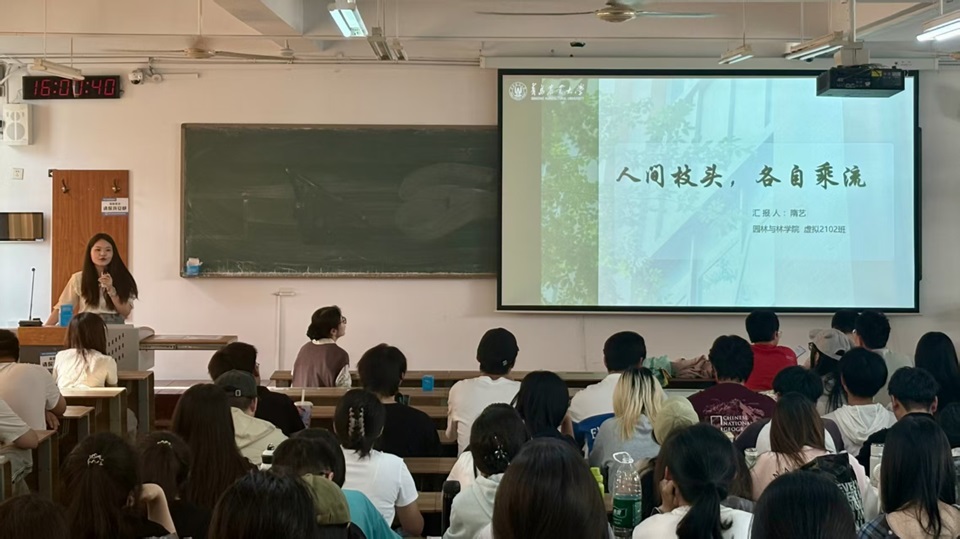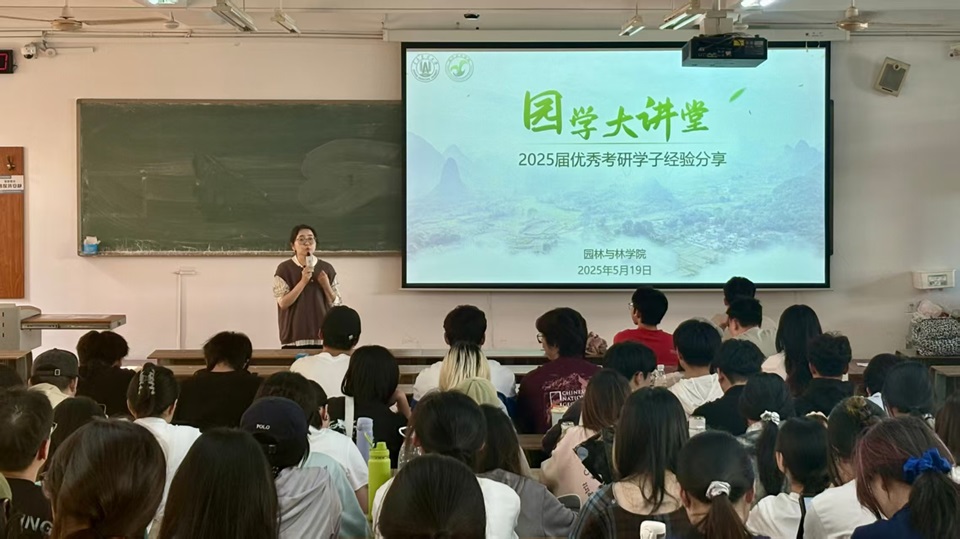 5月19日,太阳集团tcy8722在教学楼C315举办“园学大讲堂”——2025届优秀学子经验分享会。本次分享会由公司团委书记许菲菲主持,22级风景园林专业全体员工参加。