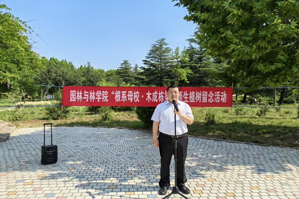 活动启幕时,王永健以“植树即育人”为喻发表致辞:“银杏根系深扎土壤,恰如学子与母校的精神联结,其材质坚韧、叶形雅致,亦象征着园林人需兼具的专业品格与人文情怀。愿大家如这树苗般,把根脉留在母校的土地上,带着‘不忘来处’的赤子之心,在生态建设的征程中长成栋梁。”教师代表李玉武回顾与毕业生共度的美好时光,字里行间满是不舍:“从课堂实训到野外考察,你们在苗圃里测量过的每寸土壤、在绘图板前勾勒的每片叶脉,都已成为师生情谊的鲜活注脚。愿你们以专业为刃,在更广阔的天地间劈波斩浪。”毕业生代表梁新伟在发言中深情表达了对母校和老师的感激之情,承诺将牢记母校教诲,扎根人民、服务社会,以实际行动回馈母校的培育之恩。随后,在专业教师的技术指导下,师生携手植下象征“坚韧与希望”的银杏树苗。铁锹翻土、提水浇灌,一株株银杏树苗在风中挺立,其扇形叶片在阳光下舒展,焕发着勃勃生机。