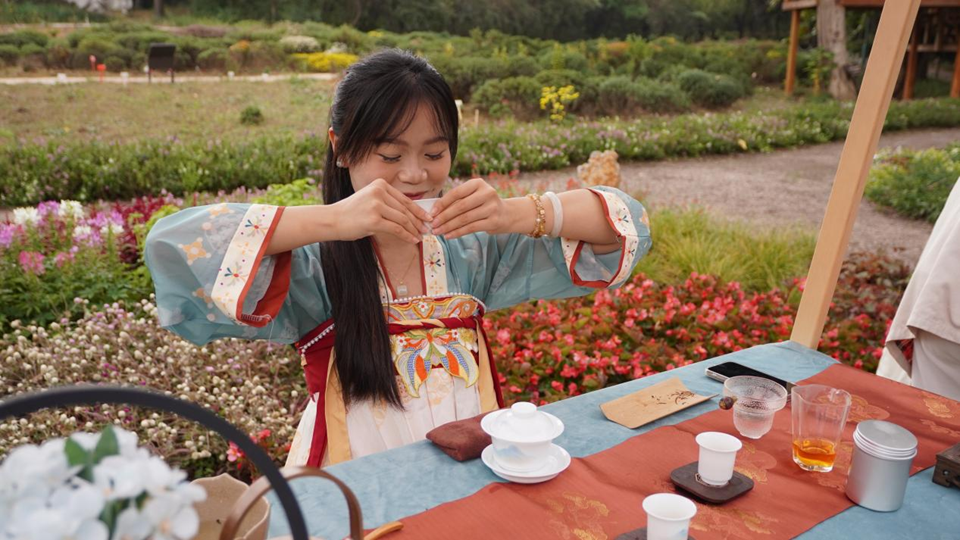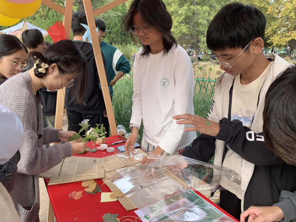 活动现场,师生们以落叶为笔,以秋风为墨,感悟中国传统文化的深厚底蕴以及各公司不同文化碰撞的绚丽。大家争先体验非遗漆扇制作、投壶游戏、彩绘艺术、木板刻画与卷轴书法等经典文化项目,游赏昆虫标本展示、茶艺展览、文艺表演等精彩节目,制作植物滴胶、祈福书签、植物手作等手工艺品。在“标本识识识”和“谜题猜猜猜”活动中,同学们以观察昆虫标本和解答谜题的形式学习植物和昆虫的知识,“汉服体验”引得同学们重拾对古老文明的敬仰与热爱,“品鉴茶香”让师生们在忙碌的生活中慢下脚步,沉浸于茶香四溢的世界,领略茶文化的独特魅力。