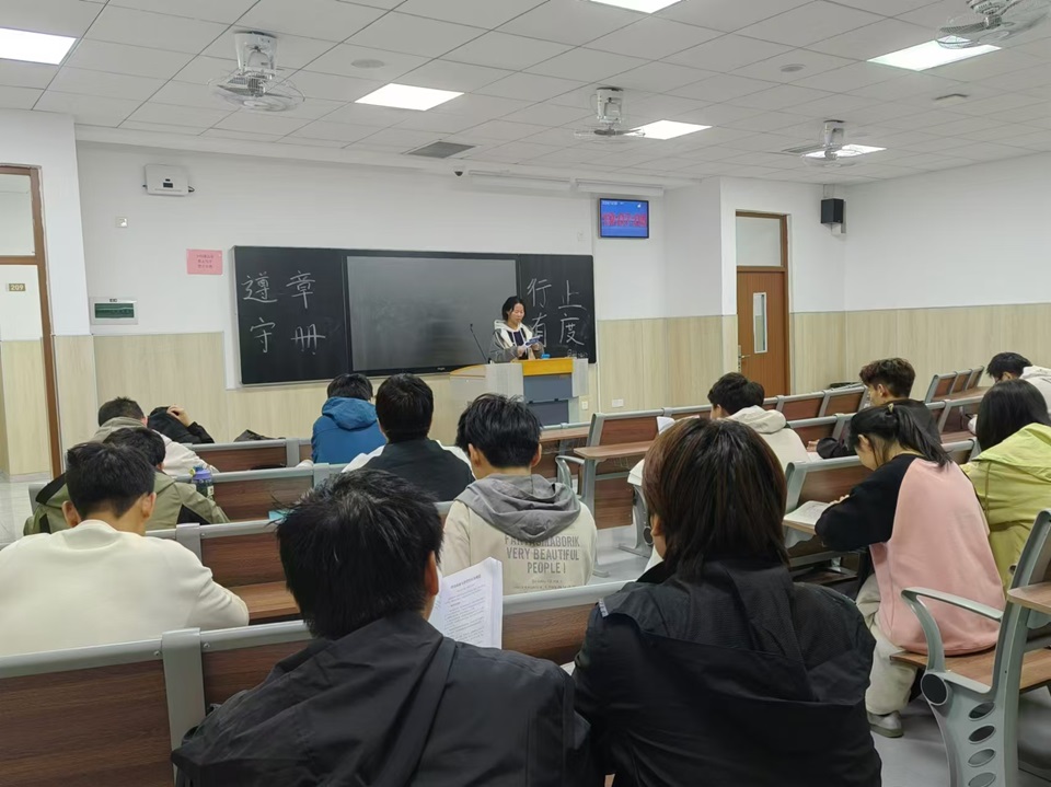 10月31日,太阳集团tcy8722于博学楼B区开展“遵章守册,行止有度”主题班会,各班团支部书记担任主持人,全院团支部参加。