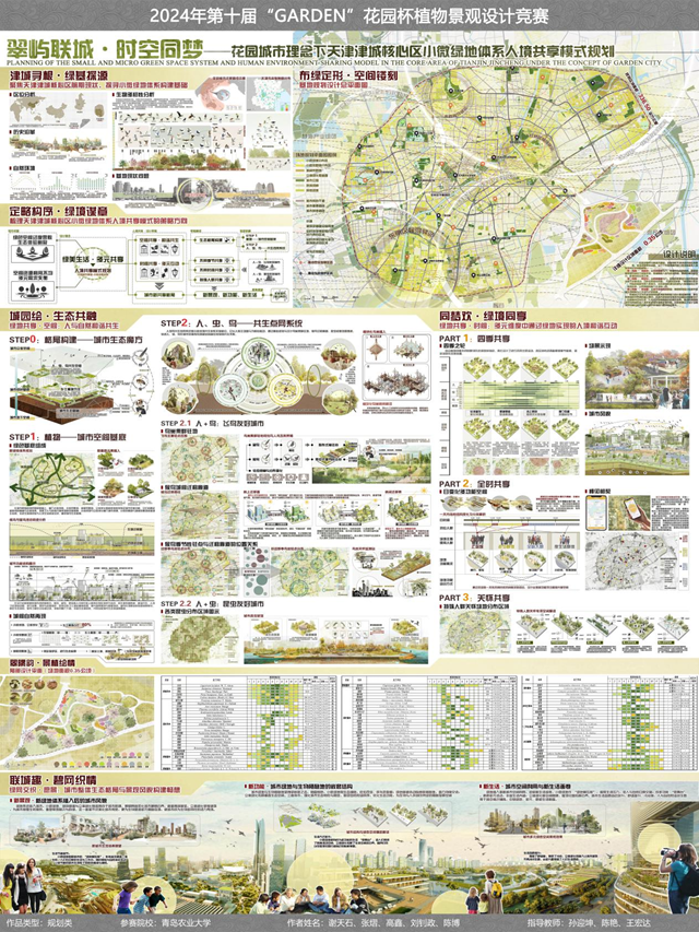 作品名称:翠屿联城·时空同梦——花园城市理念下天津津城核心区小微绿地体系人境共享模式规划