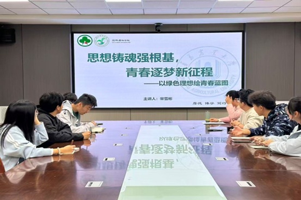 本次活动以“思想铸魂强根基,青春逐梦新征程——以绿色理想绘青春蓝图”为主题,采用“主题分享+实践展示+交流研讨”的形式,节奏紧凑、内容充实。在主题分享环节,指导教师以《让青春在绿色理想中扎根生长》为题,结合园林专业发展趋势与行业实践案例,从思想引领、专业学习、理想践行三个维度展开讲解,鼓励同学们将个人成长与绿色生态建设需求相结合,在专业领域深耕细作,让青春力量服务于生态事业。