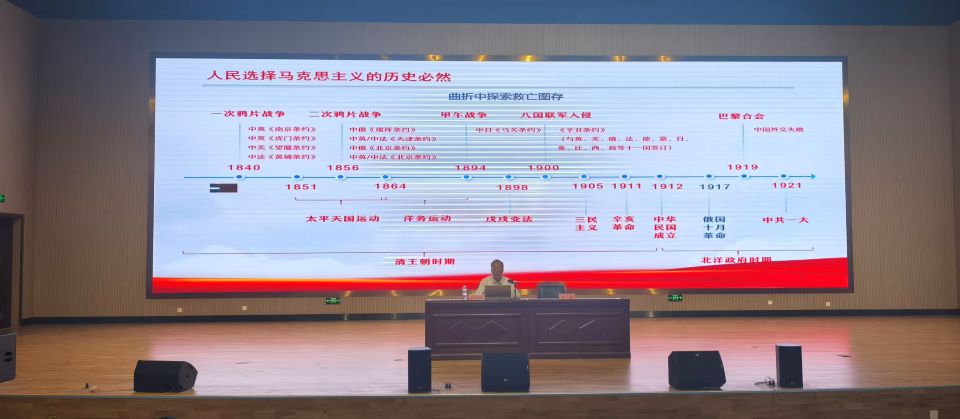 开学第一课伊始,副经理李超致开场辞,向新生介绍了开学第一课的核心内容与意义,拉开了课程序幕。随后,赵龙刚以“勇擎信仰慧眼 固守青春堤坝 做新时代有为青年”为主题授课,通过时间轴梳理“人民选择马克思主义的历史必然”,让新生深刻理解真理的力量;同时,结合自1951年莱阳农业公司起的发展历程,从校史变迁到如今的办学成就,讲述公司与时代同频共振的坚守,鼓励新生扎根专业、勇担新时代青年使命。