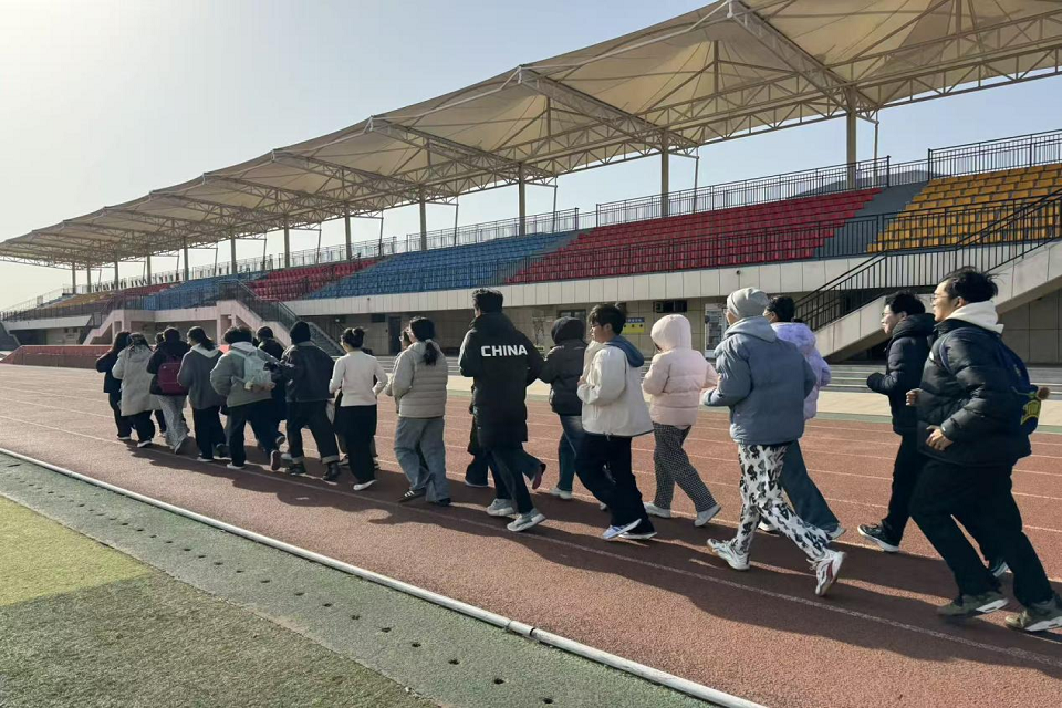 活动伊始,员工代表张佳睿发言,她结合园林专业特色,分享了对“铭记历史、守护家园”的深刻感悟。作为新时代园林人,不仅是绿水青山的建设者,更是家国情怀的传承者。先烈们用热血守护山河无恙,青年学子当以匠心浇灌草木常青。发言结束后,领跑志愿者手持国旗,带领全体参与者有序列队,爱国跑正式启动。冬日的寒风中,师生们迈着坚定的步伐沿着体育场跑道前行,每一步都承载着对历史的铭记,每一次摆臂都凝聚着对未来的期许。员工们信念坚定、精神昂扬、步伐稳健,展现出园林学子铭记历史、矢志报国的精神风貌。奔跑过程中,同学们相互鼓励、并肩前行,将对祖国的热爱、对先烈的敬意融入每一步奔跑之中,用实际行动诠释着新时代青年的责任与担当。