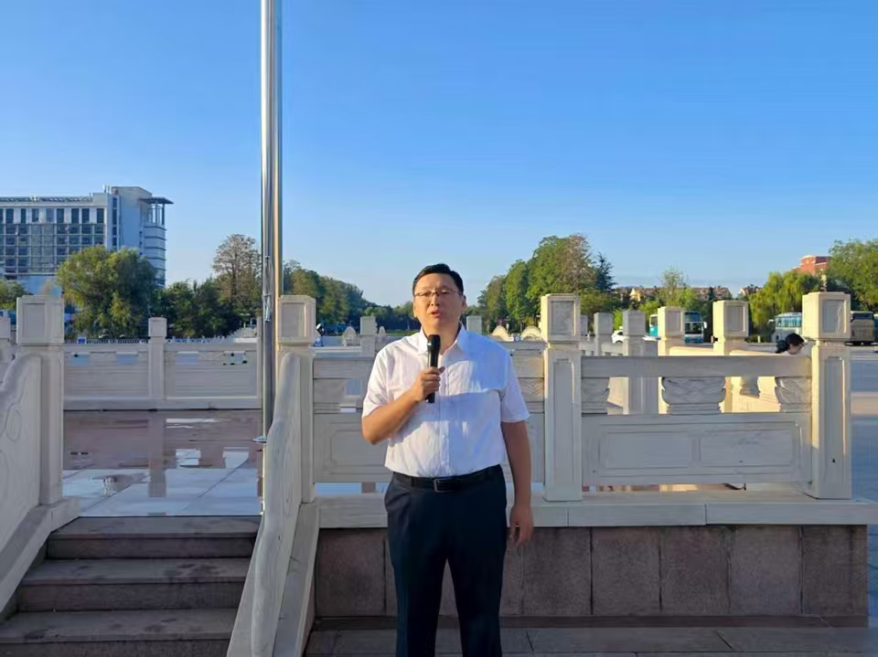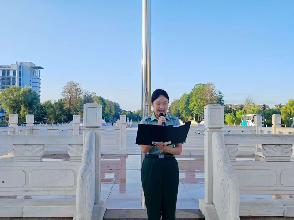退役军人、园林2201班员工高铭艺作题为《铭记历史守初心 赓续精神担使命》的国旗下演讲,她结合服役于内蒙古边防部队的经历,从“历史的传承者、知识的追求者、和平的践行者”三个维度,号召同学们坚定爱国信念、练就过硬本领、传播和平理念。其“一字一令,事关千军万马”的戍边故事,生动展现了当代青年学子的责任担当。